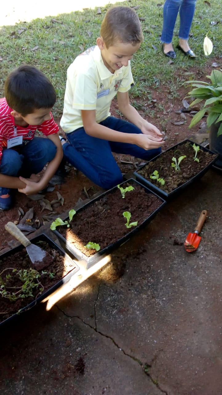 Os trabalhadores e trabalhadoras junto com os filhos e filhas realizaram atividades com a plantação de mudas e verduras, almoço e café da manhã.