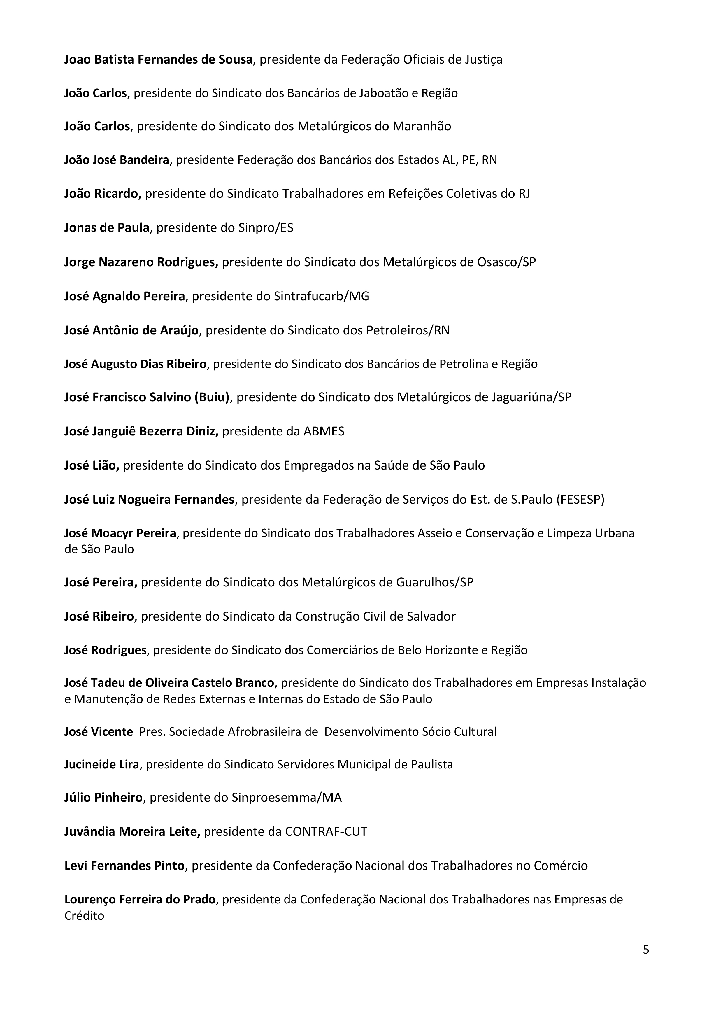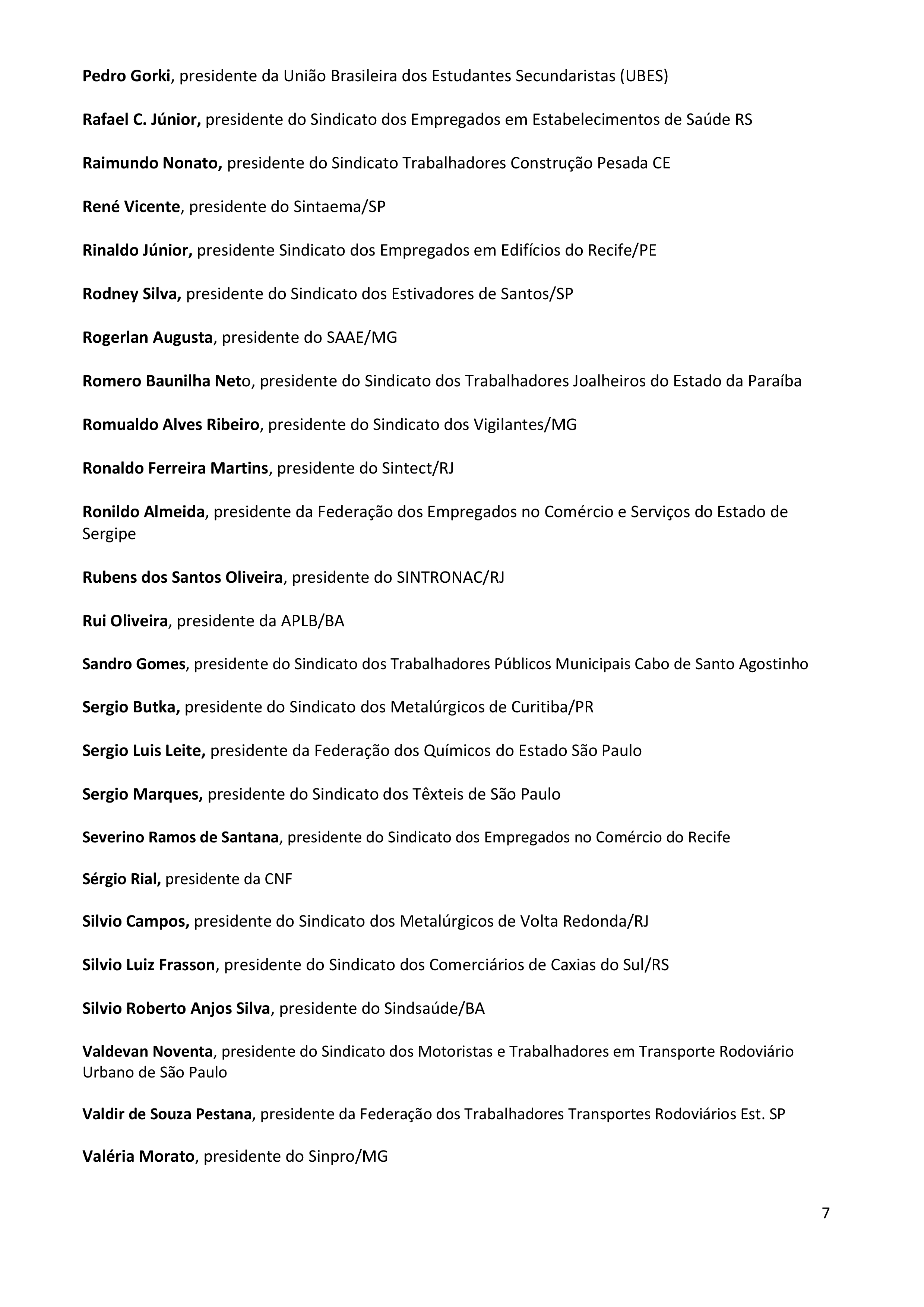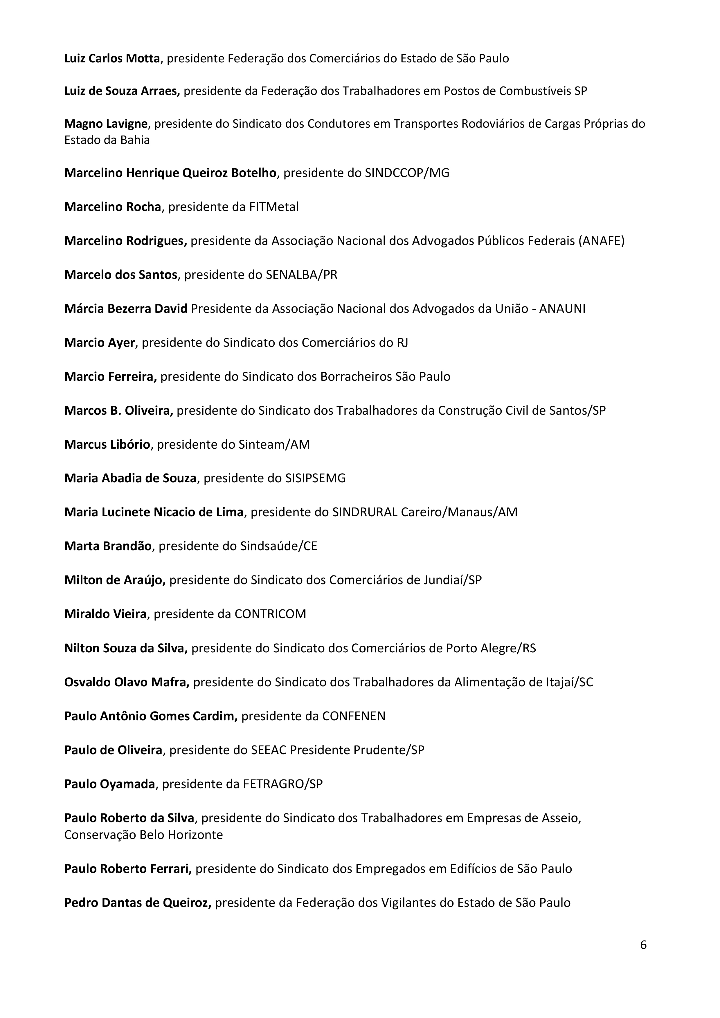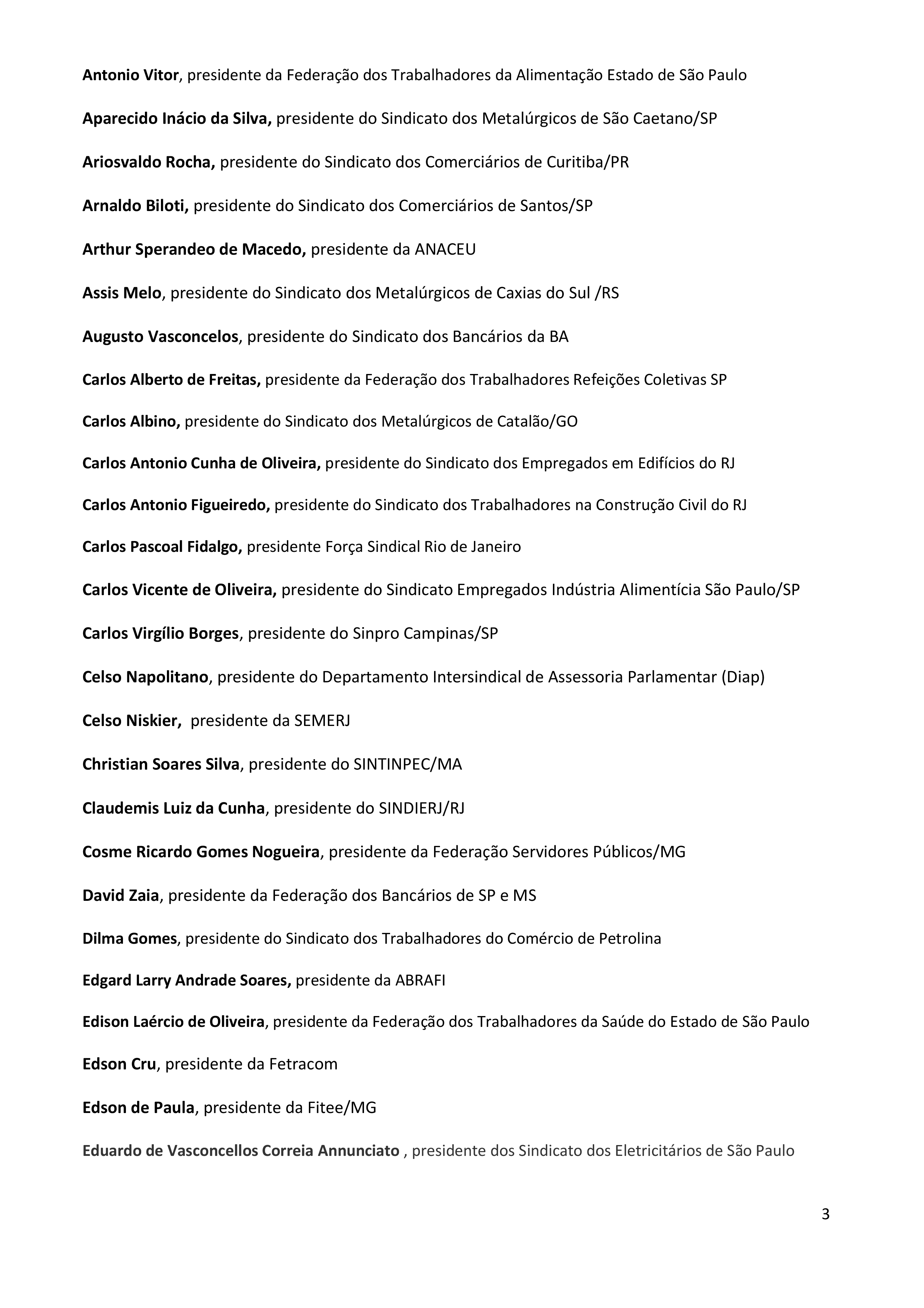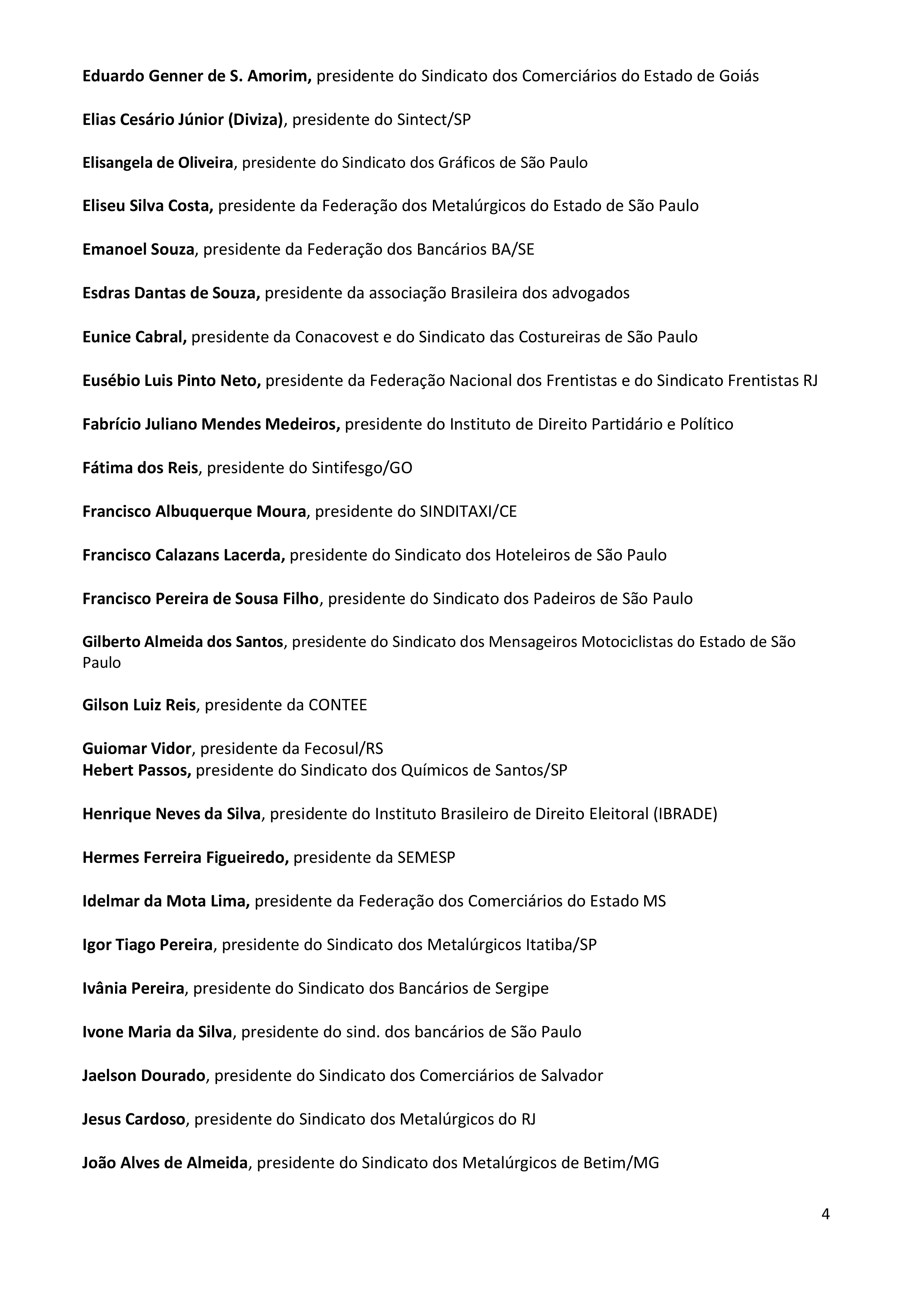 As seis centrais sindicais (Força Sindical, CUT, CTB, UGT, CSB e Nova Central) estão entre as entidades que apresentaram apoio ao STF.